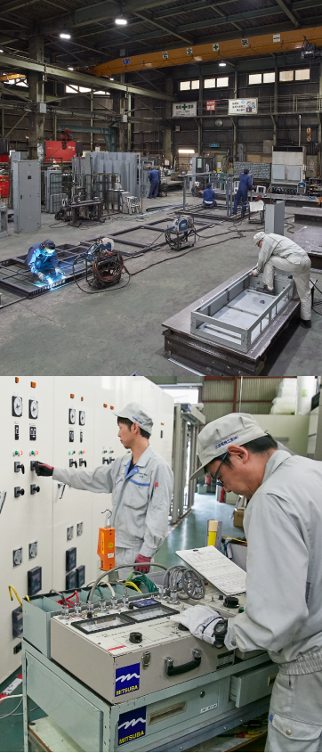 みつば電機では各種オーダーメイド品を設計からNC加工、板金製作、塗装・表面処理を経て、有資格者による電気配線組立てまで一貫生産を行い、納期短縮とコストダウンを実現、品質の高い製品を安定してご提供しています。